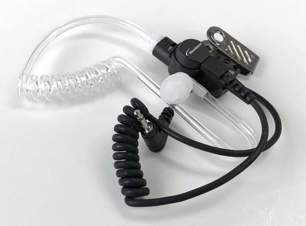 Harris XG-15 earpiece with coiled acoustic tube with 2.5mm right angle plug. For use with audio jack on speaker microphones or radios with 2.5mm jack only.
